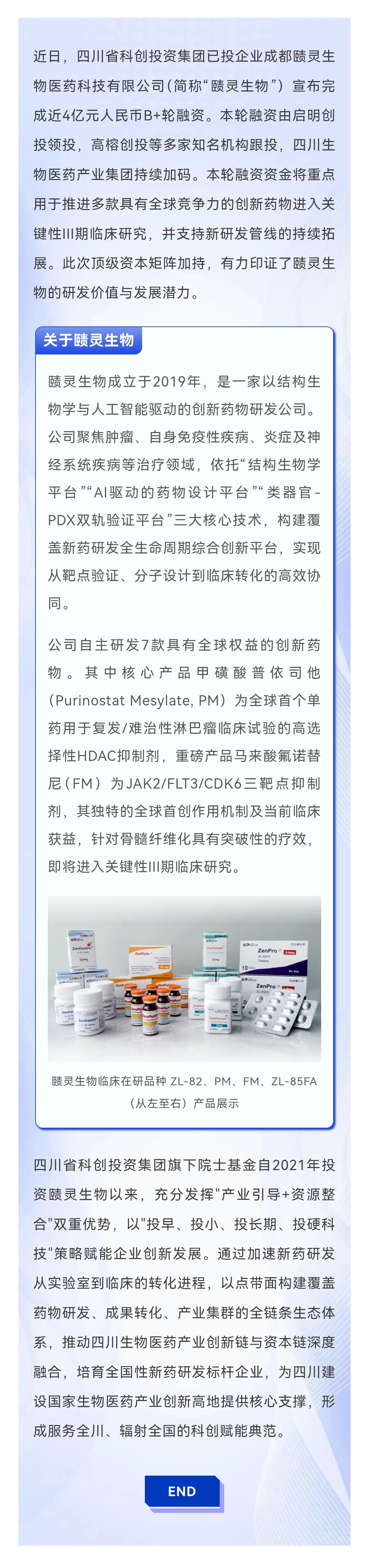 已投企業(yè)動(dòng)態(tài) | 賾靈生物完成近4億元B+輪融資,創(chuàng)新藥研發(fā)賽道再添動(dòng)能