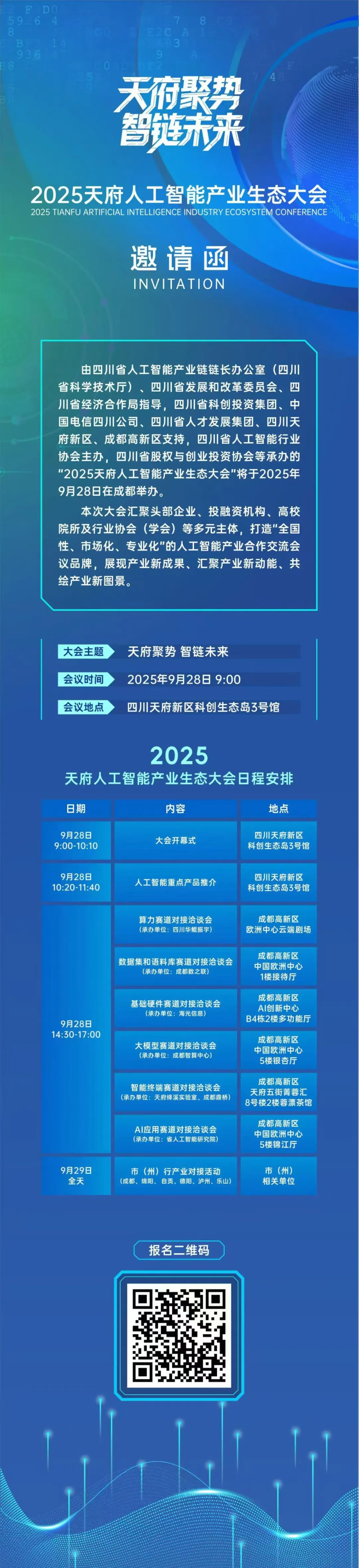 活動(dòng)報(bào)名 | 2025天府人工智能產(chǎn)業(yè)生態(tài)大會(huì)報(bào)名正式啟動(dòng)!